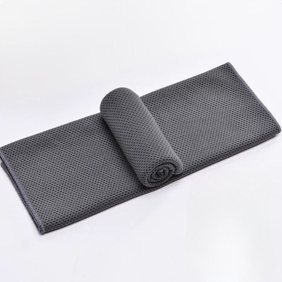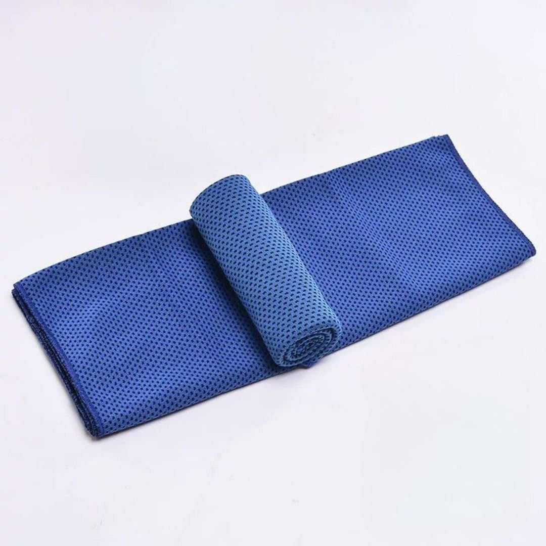 - Khăn thể thao mát lạnh Cool Towel có thể giải quyết tất cả khó chịu trên. Khác với các loại vải thông thường, Khăn thể thao siêu thấm được làm bằng chất liệu đặc biệt PVA/PVF, chỉ cần ngâm khăn trong nước và vắt nhẹ, sau đó choàng lên cổ hoặc trán, bạn sẽ có cảm giác sảng khoái như ngâm mình trong làn nước mát lạnh.